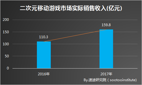 2016年二次元手游市场实际销售收入为110亿元,到2017年实际销售收入增长44%,。2017年网易推出泛二次元游戏《阴阳师》风靡一时,米哈游的《崩坏》也拥揽了一大批游戏玩家,中国原创的二次元游戏也逐渐进入海外市场,《阴阳师》、《崩坏3》、《碧蓝航线》等在海外市场也取得成功,在二次元游戏领域中国从“引进来”逐渐过渡到“走出去”。