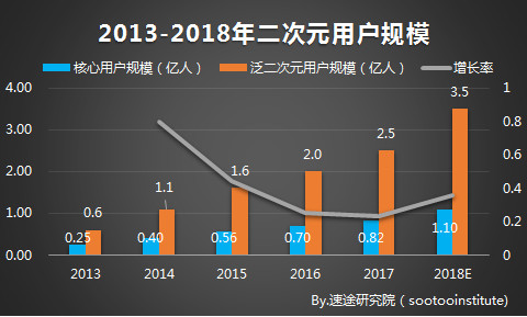 此外,硬核二次元作品拥有极其忠实的粉丝,在此类作品的IP衍生上,其用户规模也会逐渐增加。从总体来看,到2018年,国内的二次元用户规模会突破4亿人,此外,泛二次元用户和核心二次元用户也会相互转化,用户黏度会进一步加强。