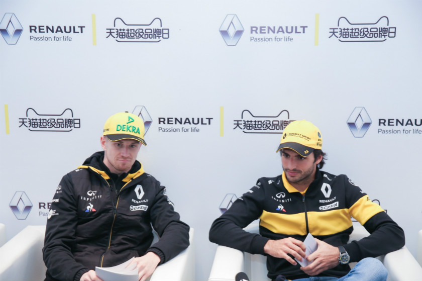 在专为两位车手设计的互动采访中,塞恩斯和霍肯伯格先后被“谁参加了全部15次中国大奖赛”和“谁是中国大奖赛成绩最好的车手”两个问题难住了……不过聊起中国美食和车队的中国合作伙伴,两位可是一点都不含糊。