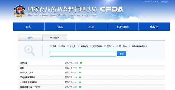 界面新闻记者从国家食品药品监督管理总局官网上查询获悉,自2011年开始,截至2018年4月13日,取得最多药品广告批准文号的前四名分别是鸿茅药酒、阿胶、藿香正气口服液、苄达赖氨酸滴眼液。