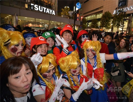 不过在刚刚过去的万圣节,日本人终于让我们找回了一点自信。在过去几年里,万圣节已经和圣诞节、情人节一样成为日本全民狂欢的节日。先来看看东京涩谷街头人头攒动的盛况吧。