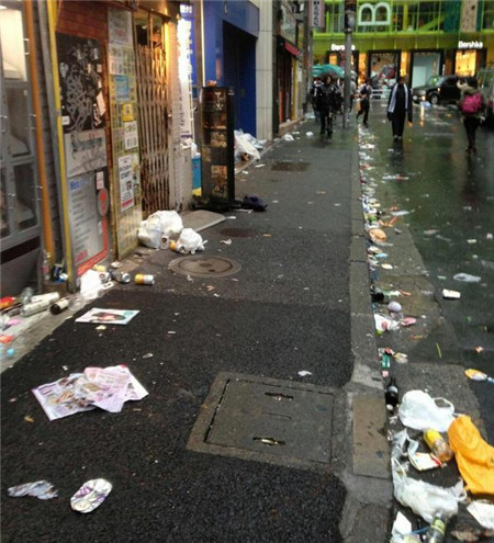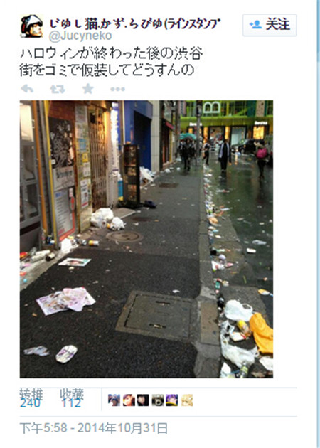"万圣节后的涩谷。拿垃圾来装饰街道是要闹哪样?"