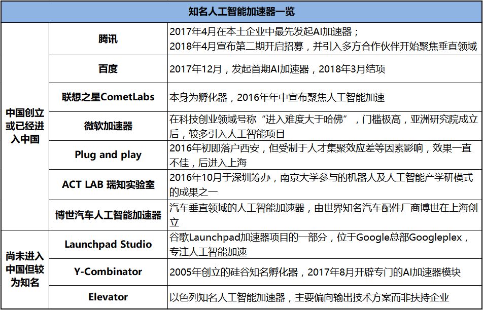 而随着腾讯的开启,AI加速器开始迅速升温。这种围绕AI能力开放的AI创业者扶持模式取代了传统支持力度有限的孵化器,开始大展拳脚,围绕AI加速器的竞争也拉开了序幕。