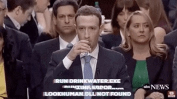 而扎克伯格的一个标志性特点,正是爱喝水。作为一个机器人,扎克伯格并不需要喝水,但在听证会上,他为了让参议员相信自己是人类,于是在镜头前疯狂表演喝水。