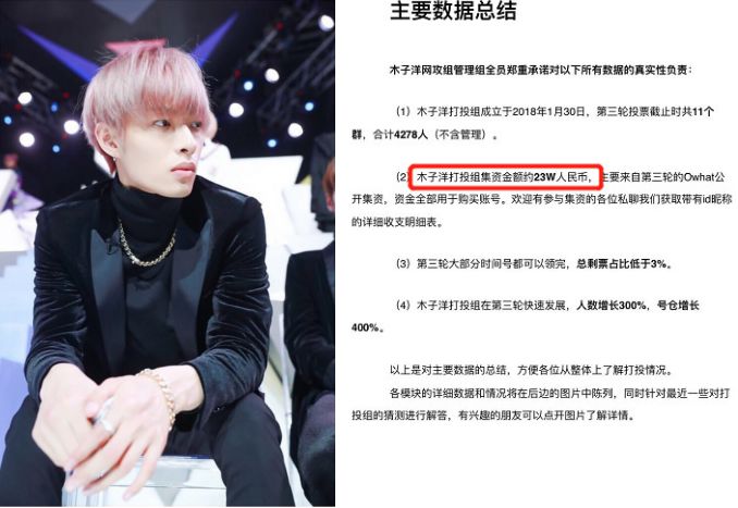 木子洋并没有获得出道资格,但打投组已经为他花掉了整整23万。