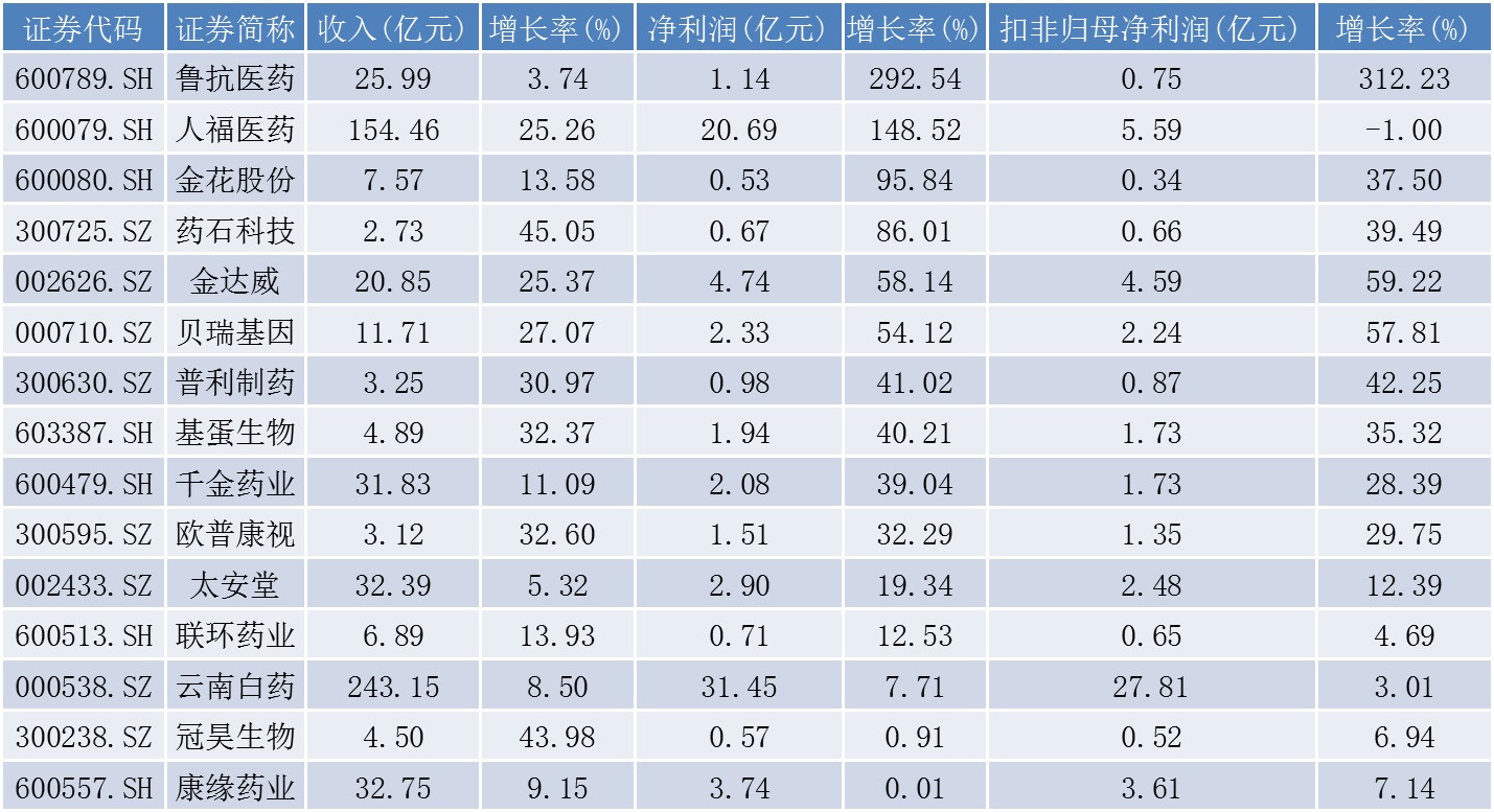 本周共有20家上市药企发布2017年年报,按照净利润增速来看,保持增长的有15家,其中鲁抗医药(600789.SH)、人福医药(600079.SH)增长翻倍,净利润同比增幅分别接近293%、148%。