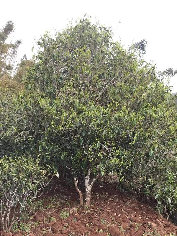定植茶苗的扶育。云南大叶种属乔木型茶种,在自然状态下的植物学特性就是主干明显、分枝稀少、顶端优势突出、树形高大、树幅在茶中也算是最小的。所以自然状态下的茶树生长点不多,难以获得很好的产出。早年种植的茶树、超大型茶树、产业化成度不高的茶树、大多如此。随着人们认识能力的提高、对茶树特性的了解,人们开始驯化培育茶树,在幼苗期就介入、人为的促使茶树早分枝、多发叉,逐步建立递级生长枝、扩展树幅,培育生长点、扩大采摘棚面,从而获得高产稳产。