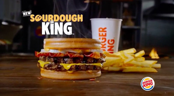 新推出的酸面包皇堡(Sourdough King),到底算三明治还是汉堡?争议点出在夹肉的两片酸面包上:它们圆圆的外形看起来的确是汉堡面包的样子,但上下被压成扁平的形状又更像三明治。