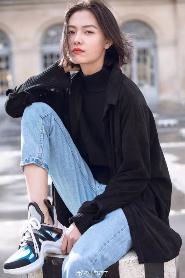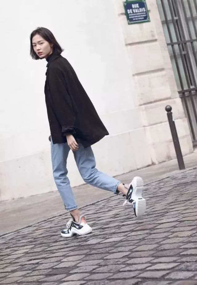 同样是牛仔裤搭配,换成运动鞋,又多了一些潇洒随性的感觉,分分钟帅过男盆友。