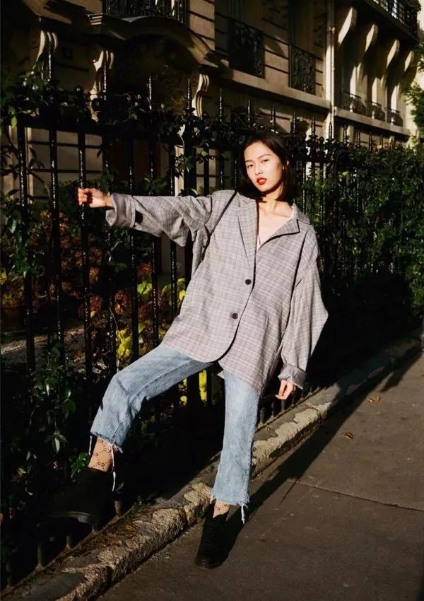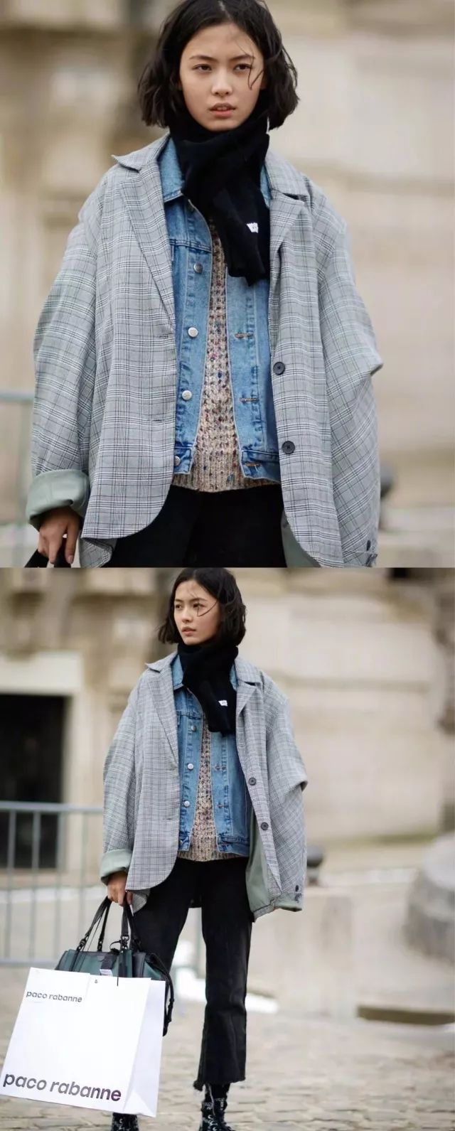 oversize西装+牛仔裤+短靴,这样的中性风look看起来超帅。