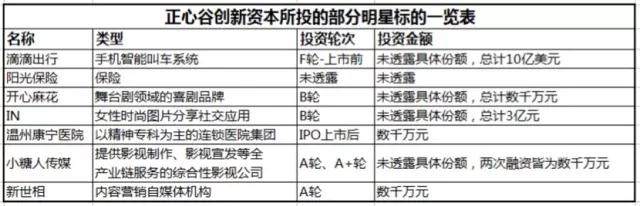 我们查询正心谷的投资历史,发现该机构手中不仅握有B站一家明星标的的股权。据公开信息显示,正心谷创新资本手中还持有多个行业明星标的的股权,如下图所示。