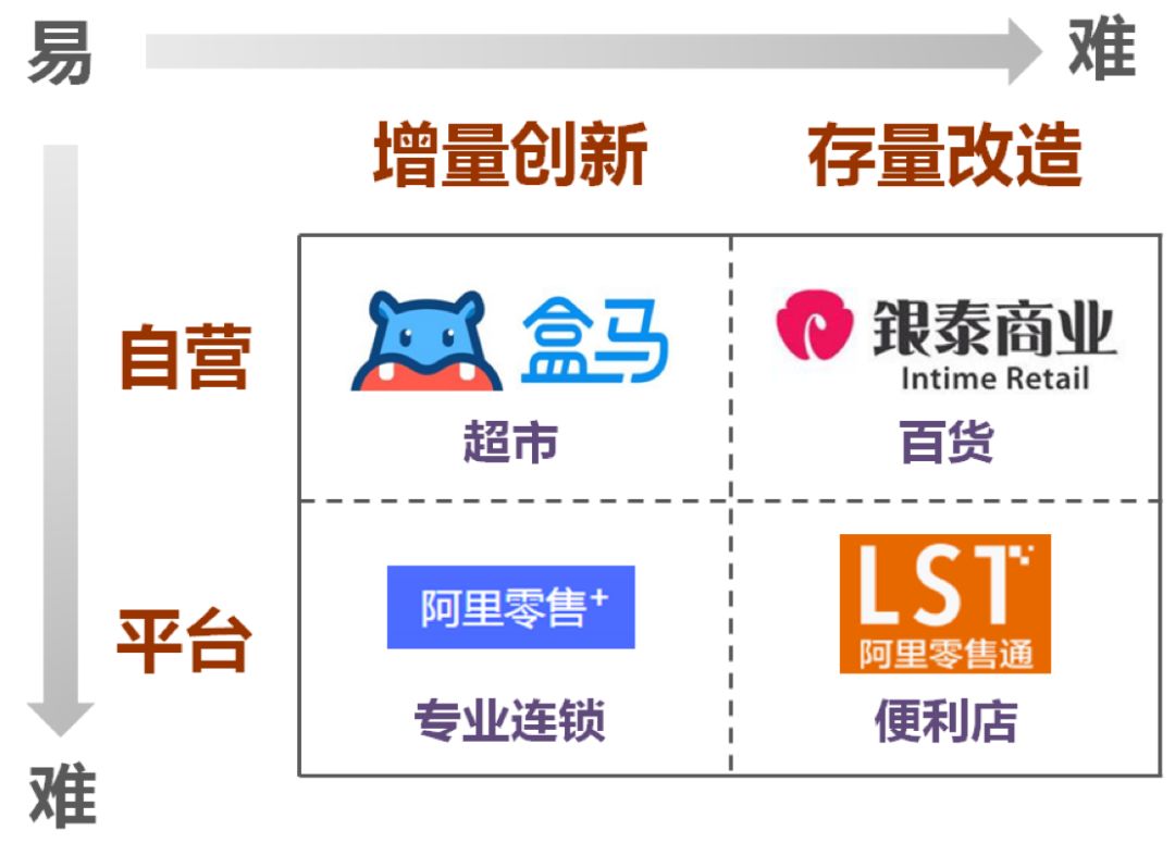 银泰被阿里收购后,这个改造其实是比较难的,尤其是百货领域有联营的因素存在,所以进展也相对慢一点。那在平台存量的改造方面,就是阿里的零售通,为小店赋能这样的一个态势。