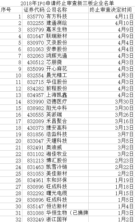 据公开信息显示,2018年已有113家企业终止IPO审查,另有13家公司中止IPO,试图转板的新三板企业就占到三成之多。共有36家新三板企业止步IPO。其中终止审查状态32家,中止审查4家。远高于去年全年终止审查的13家。
