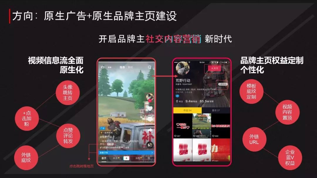 “双微一抖”是现在企业营销的标配,除了微信微博,抖音是一个存在流量红利期,值得企业去做运营的社交平台。未来抖音会对企业号的功能上开放一些资源,比如定制的视频页面,置顶功能等。