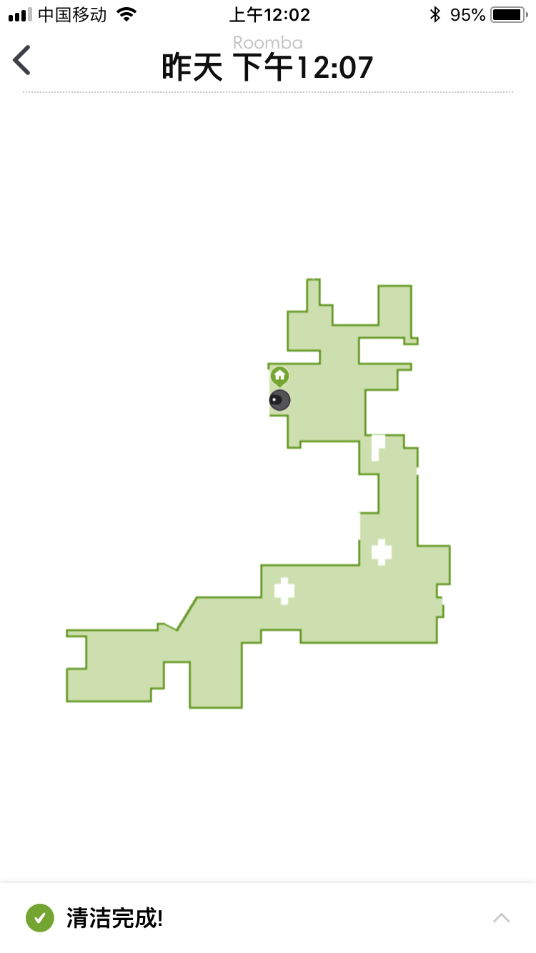 清洁完成之后,Roomba 的清洁地图会在iRobot Home APP中呈现出来。