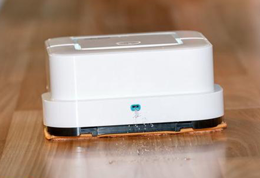 在湿擦模式下,通过喷水、三段式的来回拖地,Braava jet 对于清除木地板和瓷砖的深度灰尘是好帮手。由于Braava jet的抹布设置在机器人前方,可以沿着墙壁、踢脚线和家具边缘清洁污垢和灰尘,对于墙角、床底等不易清洁到的地方清洁也足够细致。
