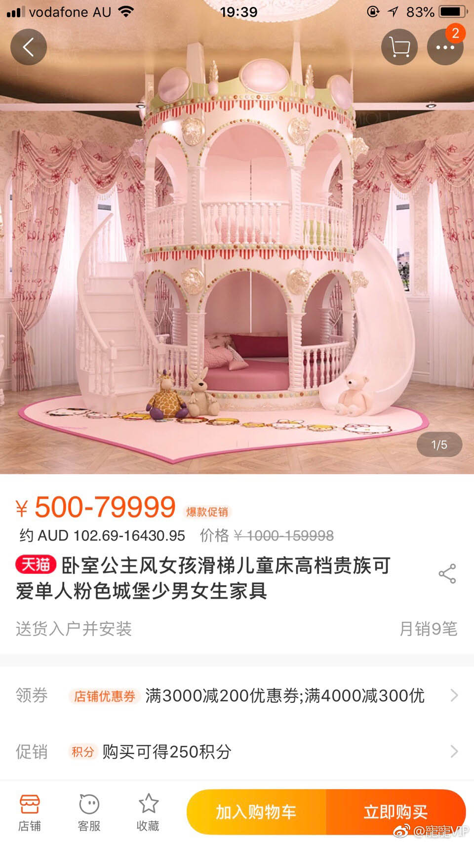 两层公主豪华大床,玛丽苏女孩们每天光是考虑是款款走下楼梯还是淘气地滑下滑梯就能用掉好几个小时。
