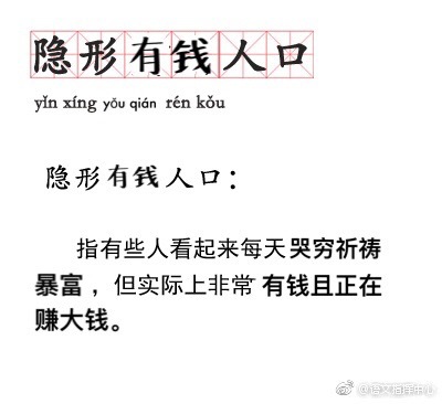 本人隐形贫困人口,有没有哪位隐形有钱人口想带我一起哭穷的?