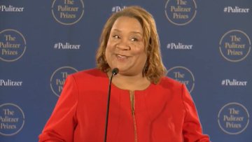普利策奖行政官达娜·卡内迪宣布拉马尔获奖时的表情: