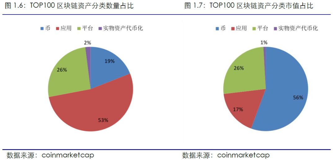 注:火币区块链应用研究院根据区块链资产代表权益属性的不同将其分为“币”、“平台”“应用”和“实物资产代币化”四类。
