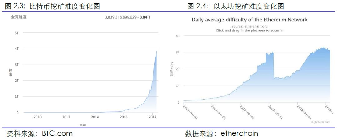 比特币挖矿难度持续提升,本周以太坊挖矿难度有所下滑。2018年4月9日至4月15日,比特币本周平均挖矿难度为3.84T,BTC.com预测接下来一周的挖矿难度为4.18T,环比上升12.06%。以太坊本周全网平均挖矿难度为3.12P,环比下降2.1%。