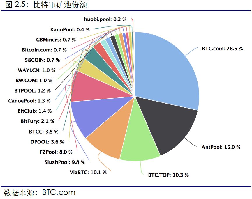 主要矿池份额前五稳定, BTC.top排名上升两位至第三位。2018年4月9日至4月15日,过去一周比特币全网出块数据为1094块,相比上周下降0.726%,其中排名前五矿池为BTC.com、AntPool、BTC.top、ViaBTC和SlushPool,分别出块306、161、111、108和105块,占比为27.97%、14.71%、10.15%、9.87%与9.6%,算力分别为7.76EH/s、4.09EH/s、2.82EH/s、2.74EH/s和2.66EH/s。矿池份额本周基本保持不变,前五名中的后三位排名彼此发生变换,ViaBTC和SlushPool均掉落一位,BTC.top上升两位至第三位。