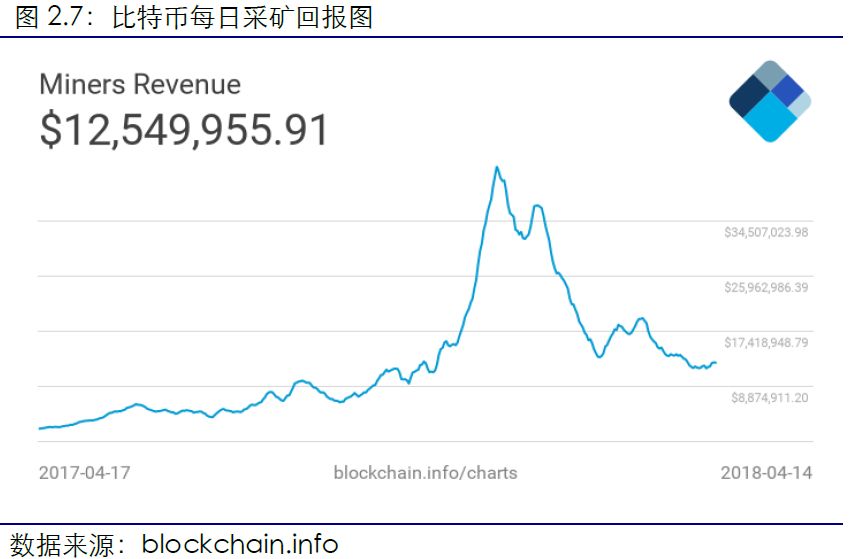 比特币、以太坊挖矿回报本周都略有上升。2018年4月9日至2018年4月15日,比特币的本周挖矿平均回报为1254.99万美元,相比上周环比上升4.17%。
