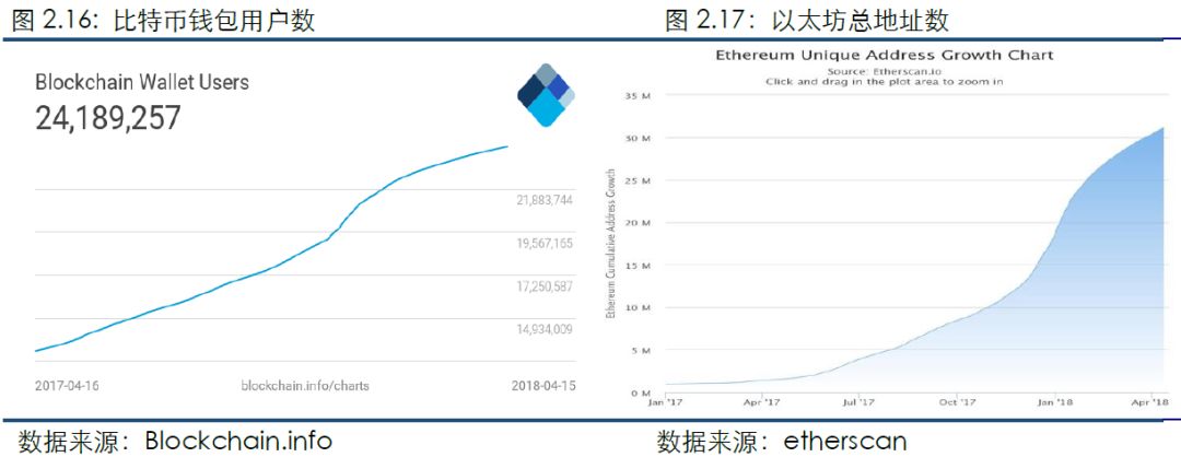 本周比特币、以太坊新地址增速均下降约10%。根据blockchain.info数据计算,截止4月15日,blockchain钱包总数达24189257个,本周新增115240个,与上周新增数相比下降9.72%。
