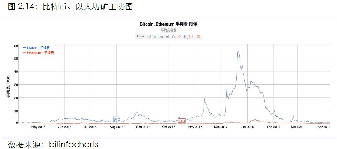 本周比特币矿工费下降、以太坊矿工费上升。2018年4月9日到4月15日,比特币本周平均每笔矿工费为1.071USD,相比上周下降8.86%。以太坊本周平均每笔矿工费为0.242USD,相比上周上升19.8%。