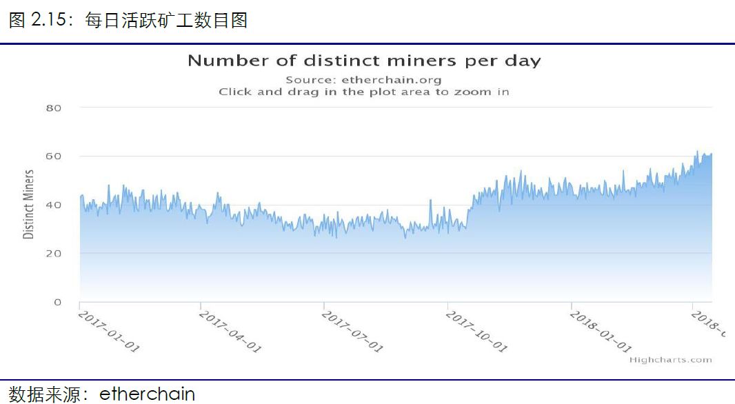 以太坊活跃矿工数目小幅下降。2018年4月9日至4月15日,以太坊本周活跃矿工数为423,环比上升3.68%。本周以太坊活跃矿工数目小幅上升。