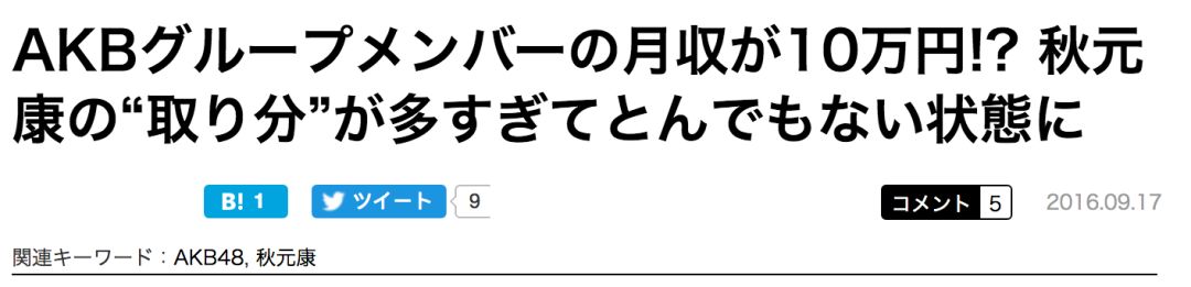 在秋元康赚得盆满钵满的同时,除去被吉本兴业等大型经纪公司单独运营经纪约的头部成员,AKB近8成的成员属于AKS旗下艺人,整个公司都被秋元康压榨,艺人又能拿到多少钱呢?她们只有剧场演出和握手会的工作,月收入平均只有10万日元,即不到6000人民币。