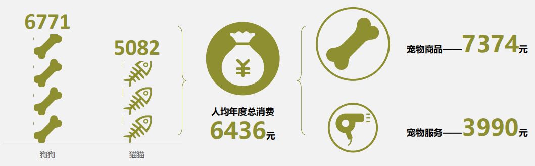 人均年度消费高达6千元,狗狗花费更高,宠物服务存较大发展空间
