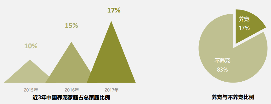 2017年中国养宠家庭约达到5912万,占全国家庭的17%