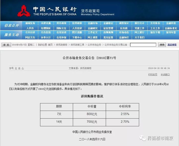 4月16日上午,央行上调了14天逆回购的利率,从2.65%上升到了2.70%,意味着“大银行从央行获得资金”的成本上升了。3月22日央行曾上调了7天逆回购的利率,央行最近的举动,相当于“非正式加息”。对于楼市,还是要看真实利率,也就是央行每季度公布的“房贷加权平均利率”。毫无疑问,2018年商业房贷的“加权平均利率”会持续走高。(孟祥远)