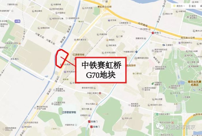 中铁赛虹桥G70的环评公示显示,本次环评主要针对实际出让的 A 地块进行评价,B 地块规划用途为Rax 幼托用地,由雨花台政府出资并建设,建成后移交给雨花台区教育主管部门。本次规划建设7栋27-30层的高层住宅,其中 有5栋30层的住宅(1、3、4、 5、6号楼)和2栋27层的住宅(2、7号楼)以及沿凤台南路设置 2 层的配套用房以及其他附属设施。