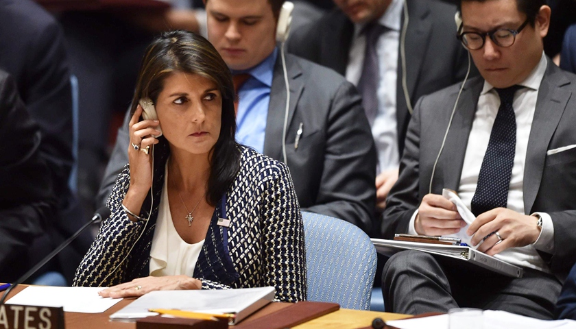 美国常驻联合国代表黑莉4月15日宣布美国准备就叙利亚化武事件对俄罗斯实施新一轮制裁,制裁措施将于本周一公布。但白宫经济顾问周二却表示尚未对制裁做决定,而黑莉是“一时糊涂”。对此说法,作风强硬的黑莉立刻发表声明,怒怼白宫。
