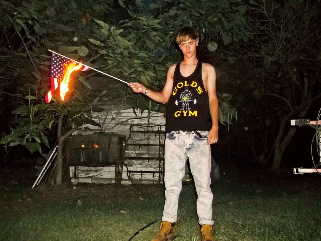 在他几次往返于这些曾经种植着棉花和櫆蓝的阴冷湿地后,他内心一定会有一种高中肄业生应有的满足感。他下载了几本介绍 3K 党的书籍。他罗列了几个适合枪击的黑人教堂。他还比较了袭击教堂或黑人文化节这两个选项各自的优劣。在列表时他还会单独标记出白人的教堂,注明这个教堂只需“看一看”。他会在他的笔记中随意画上纳粹十字和 3K 党标记。他也会选择南北战争前与奴隶制有关的地点发个定位。他还会发布自拍,记录行程中的自己,借助网络的力量来彰显自己的孤独。
