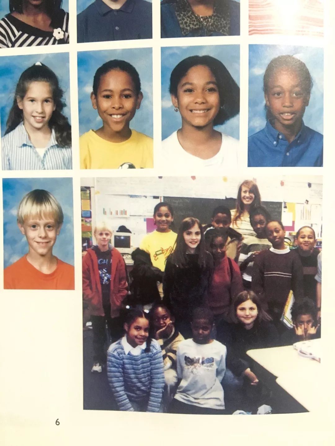在我离开之前,我跟着泰德进了他的书房。他的妻子扬拿出一本年鉴。他们翻了一遍,找到了他们这张照片。我们三个人挤在一起,凝视着这张班级照。这个小而多元的班级,每个面孔都很年轻。黑人学生满脸笑容,还有几个白人学生也面带微笑。学生们聚在一块,手臂勾着旁边的同学,感情清澈美好,笑得轻松随意。然后我找到了迪伦。他不在照片的中心,很用力地微笑,悲伤却从眼角跑出来。他站得很边缘,身着整洁的红色夹克,顶着齐刘海,和周围的同学格格不入。