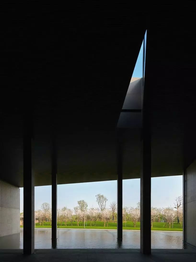 晓书馆所在的一面落地窗外,围绕着淡淡的浅水