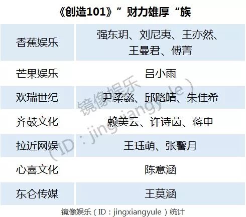 巨头入局,自带光环。在《创造101》的参赛者背后,有不少“名门大户”。