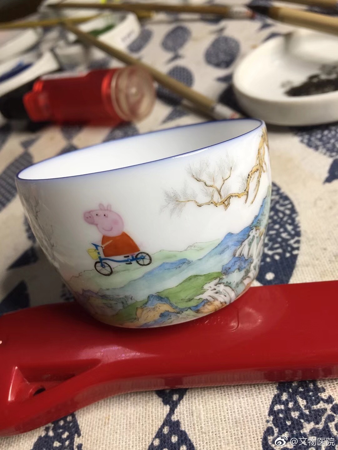 手端珐琅彩佩奇杯,品一口香茗,做个儒雅社会人。