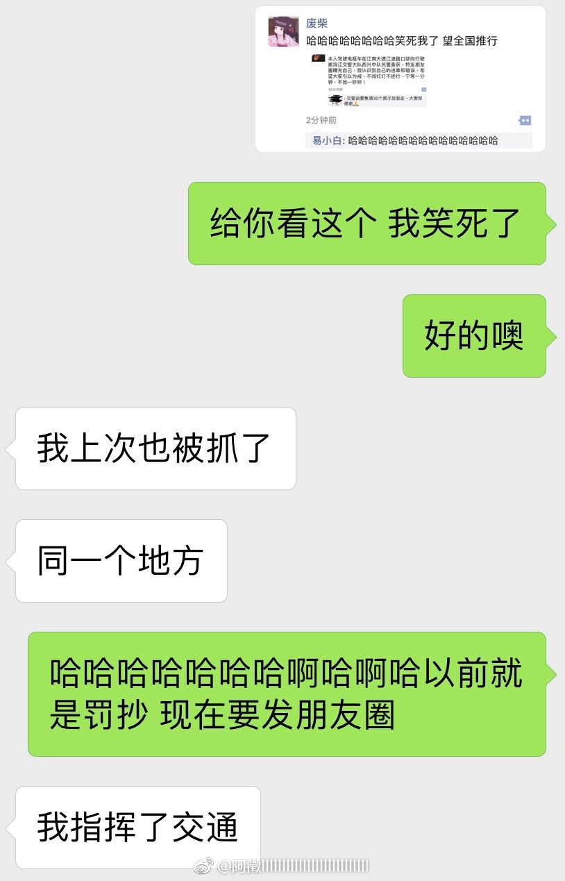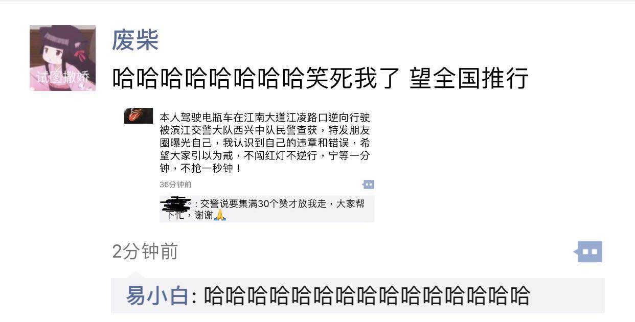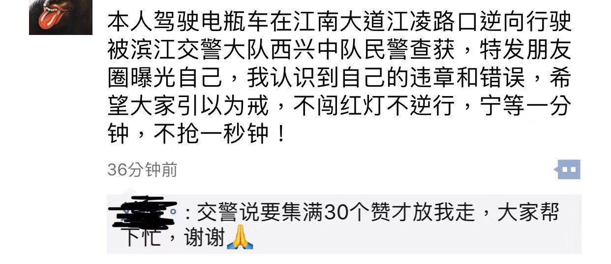 根据博主@你扯到我腿毛了 的分享,违反交规有了新代价:发朋友圈(还带集赞的那种)。