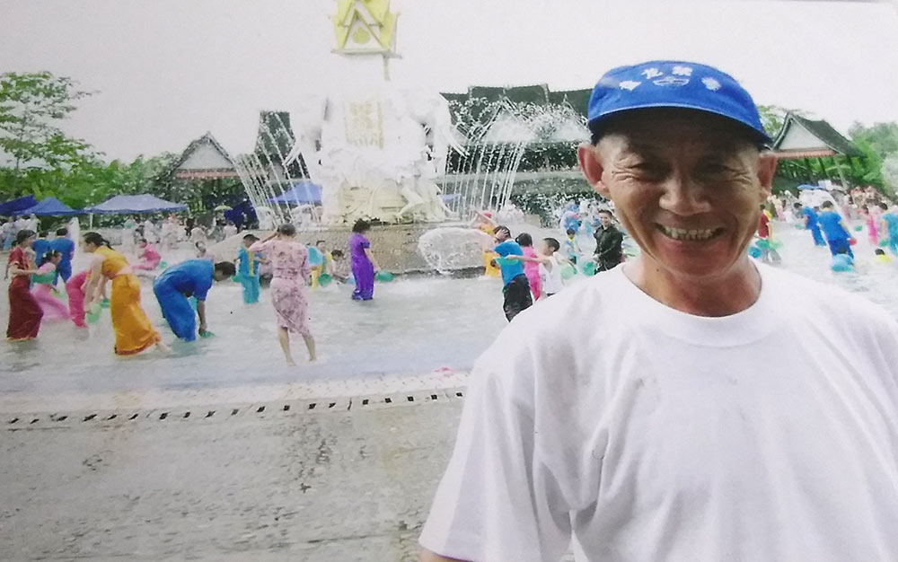 题图:第一次进行全国宣传戒毒期间,孟进生走到云南,正碰上泼水节,小灵通被水泼坏了。