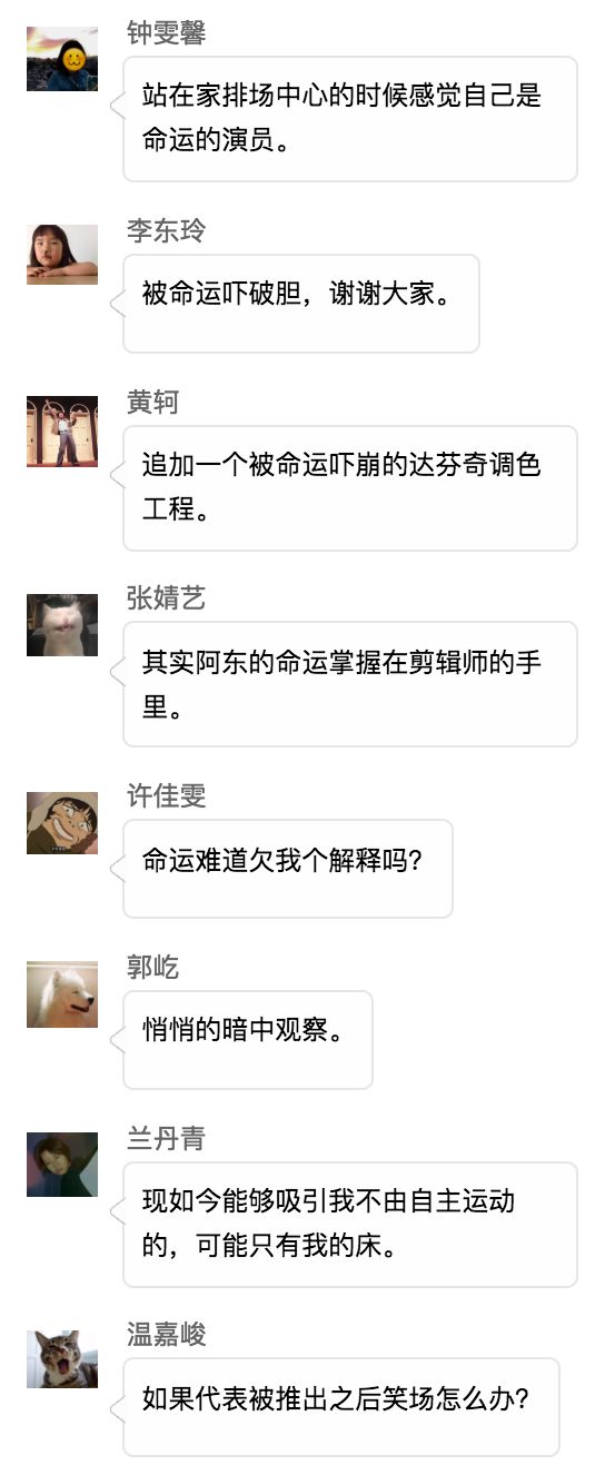 我一开始有点懵,想努力放空自己,感受一下所谓的“场”。这时,其中一位代表角色突然愤怒地冲着我走过来,我被吓得连连后退,不停地耸肩,很难说是被惊吓后的条件反射,还是被他们所说的“能量”驱动的反应。