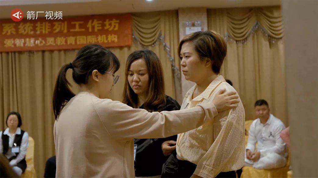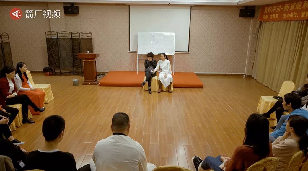 在龙老师的引导下,她选择了三位参与者分别扮演自己、过去和未来,把他们排列在会场中间,静静地坐在一旁,治疗过程就开始了。