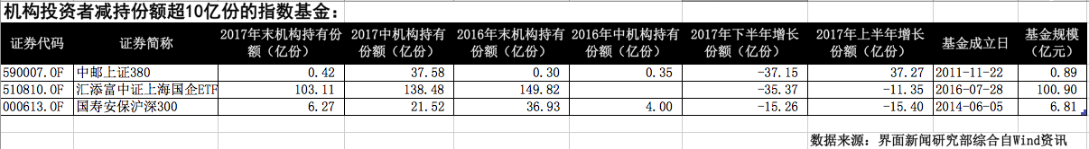 相比主动型基金,指数基金交易成本更低、透明度更高,更适合做资产配置工具。界面新闻梳理去年下半年机构在指数基金上的资金出入情况发现,机构也爱追涨杀跌、追逐明星,对于长期低迷的板块缺乏耐心。