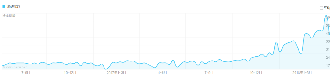 这两年,「大肠水疗」越来越火了,搜索百度指数你会发现他的关注度有爆发性的增长。