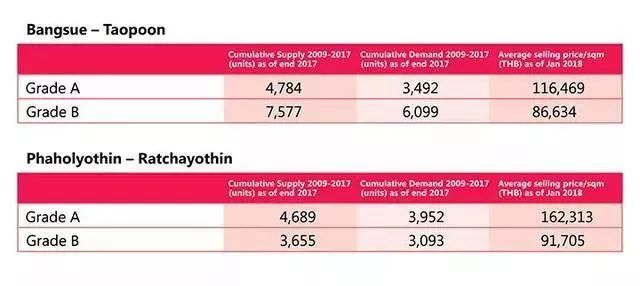 表2:Taopoon-Bangsue和Paholyothin-Ratchayothin的A-B级公寓