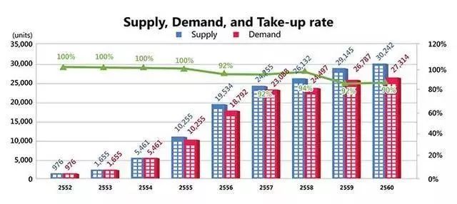 表1:需求、供给和占用面积taopoon bangsue公寓率
