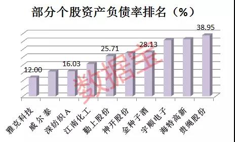 资产负债率低的壳概念,更容易受到青睐。数据显示,雅克科技目前的资产负债率只有12%榜单最低;威尔泰、深纺织A两只股票资产负债率均在20%以下。此外,江南化工、勤上股份、神开股份等个股资产负债率均在30%以下。